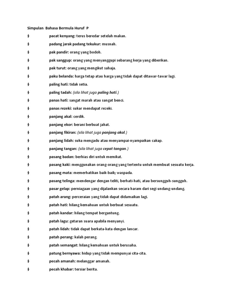 Simpulan Bahasa Bermula Huruf P