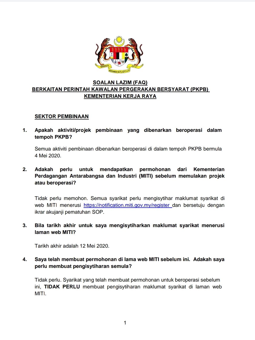 Majlis Keselamatan Negara On Twitter Soalan Lazim Faq Berkaitan Perintah Kawalan Pergerakan Bersyarat Pkpb Kementerian Kerja Raya